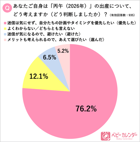 そこで今回、ベビーカレンダーのママたちに調査を行いました。結果は、迷信に振り回されることなく、むしろその言い伝えを前向きに捉え、自分たちの意思で出産を考えようとする声が多数を占めるものでした。不安な時代だからこそ、根拠のない言い伝えに立ち止まるのではなく、「自分たちはどう生きたいか」「どんな家族を築きたいか」をまっすぐに見つめる--。その姿勢の強さとしなやかさに、深い感銘を受けました。