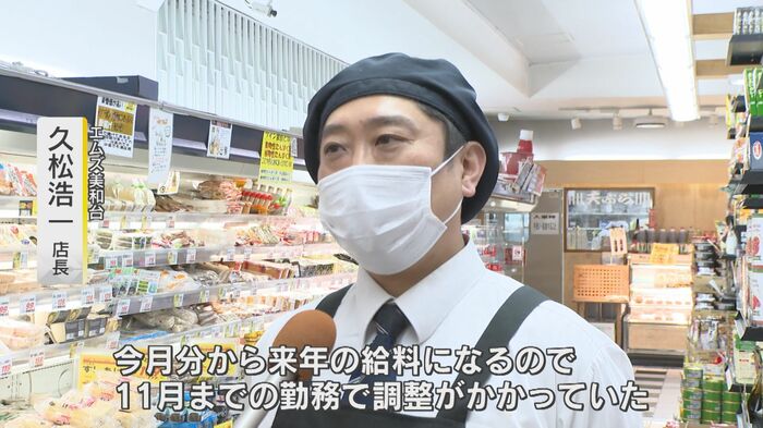 『エムズ美和台店』店長の久松浩一さんは「毎年のことなので、それなりには毎月毎月で調整してやってはいたんですけど、今月から来年のお給料になりますので、11月までの勤務っていうのが、調整がかかっていた感じです」と話す。