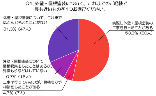 Q1. 外壁・屋根塗装について、これまでのご経験で最も近いものを1つお選びください。