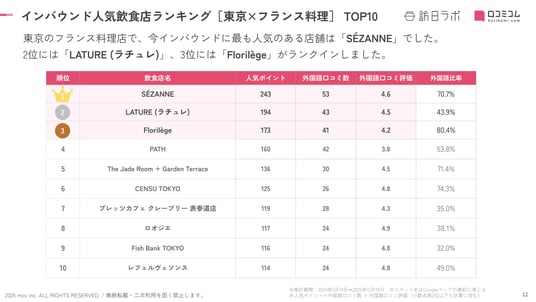 【独自調査】2025年最新:外国人に人気の飲食店ランキング[東京×フランス料理店 編]1位は『SEZANNE』!| インバウンド人気飲食店ランキング #インバウンド #MEO