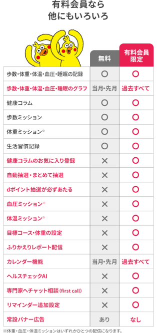 ※5「dヘルスケア」有料版は、月額利用料:440円(税込)、App Storeでのご購入・Google Playでのご購入 月額料金:480円(税込)でのご提供です。