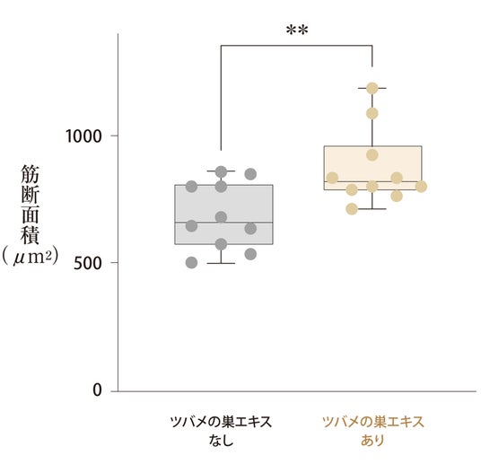 実験において、ツバメの巣エキス摂取により筋断面積の約1.3倍の増加が確認されました 。この結果は、筋肉そのものの成長や修復を促進させる可能性を示唆するものです 。
