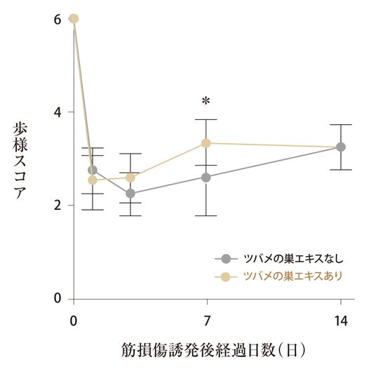 実験により、ツバメの巣エキスを摂取することで、歩行能力が有意に改善し、約1.2倍握力が増強することが確認されました。これは、損傷後の機能回復や、身体パフォーマンスの向上をサポートする可能性を示唆するものです 。