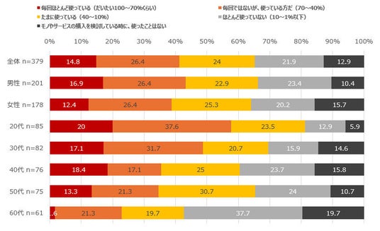 ※( )内の%は調べ物全体に占めるAIアプリ・サイトの活用度合い。(単一回答)