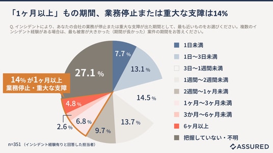 ・14.2%が、「1ヶ月以上」の業務停止または重大な支障