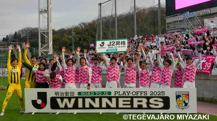 2025年のサッカーJ3リーグ、テゲバジャーロ宮崎の橋本啓吾キャプテンが、キャリアハイとなる25ゴールを挙げ得点王に輝き、初めて最優秀選手賞にも選ばれた。チームを牽引してきた橋本選手だったが、J2昇格をかけたプレーオフの決勝は、自宅で戦況を見守ることに。仲間たちが「ハッシーのためにも」と奮起し、圧巻のゴールラッシュで掴んだJ2昇格の瞬間、橋本選手はどのような思いだったのか。喜びと悔しさが交錯した胸の内と、来シーズンへの決意を明かした。