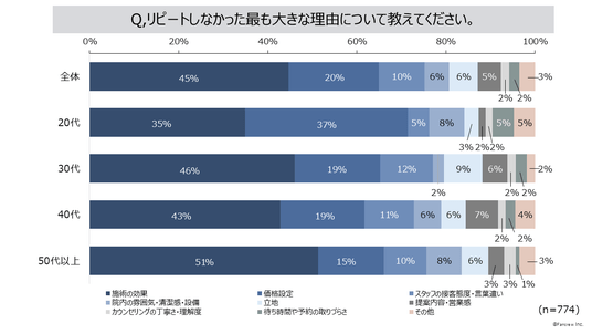 本調査ではこれ以外に、美容室をリピートする際にお客様が重視する点や、利用頻度や価格帯に対する印象など全38問で回答を得ています。