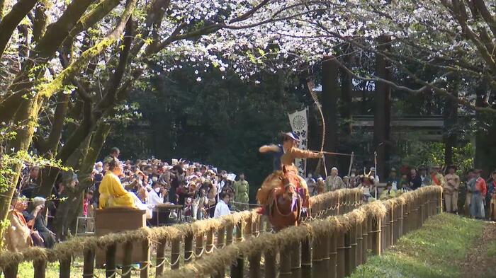 桜が咲き誇る4月、新年度の始まりとともに、宮崎市の宮崎神宮では、厳かな雰囲気が漂う中、伝統の流鏑馬(やぶさめ)が行われる。