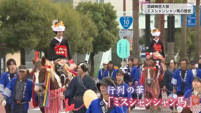 祭りに華を添えるのは、新婚夫婦が鵜戸神宮をお参りする風習に倣った「ミスシャンシャン馬」だ。