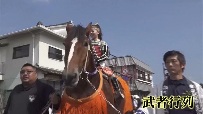 馬にまたがった勇ましい女武者の登場に歓声が上がる。