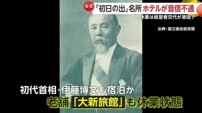 初代総理大臣・伊藤博文も宿泊したことがあるとされる、老舗の「大新旅館」も休業状態だった。