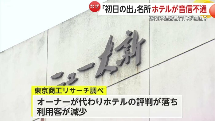 「初日の出」の名所で知られる千葉・銚子市にある老舗ホテルが突然休業状態になり、音信不通となっている。ホテルで何が起きているのか、現地を緊急取材した。