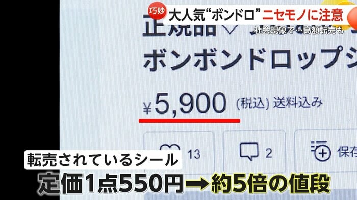 今、大人気で社会現象にもなっている“ボンドロ”と呼ばれるシール。ぷっくりとした立体感が特徴で、発売から1300万枚を売り上げるほどの爆発的ヒットとなっている一方で、フリマサイトでの高額転売や、精巧な偽物の流通が問題化している。