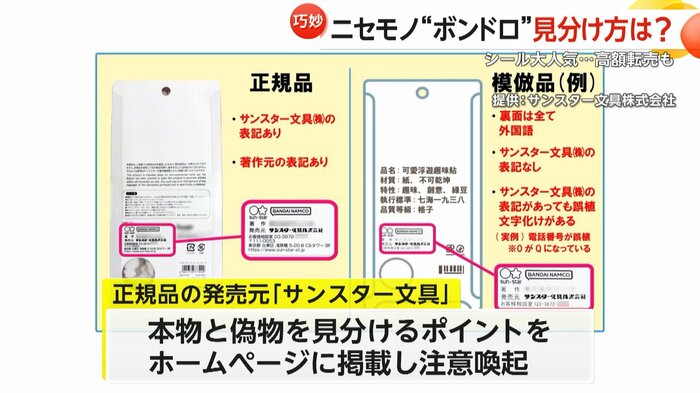 こうした事態に、正規品の販売元の「サンスター文具」は、本物と偽物を見分けるポイントをホームページに掲載し、注意を促している。