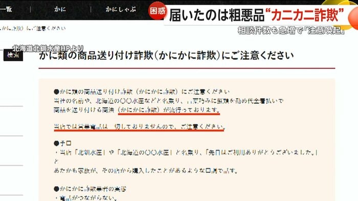 “カニカニ詐欺”が問題になっていて、北海道の水産会社も注意喚起している。