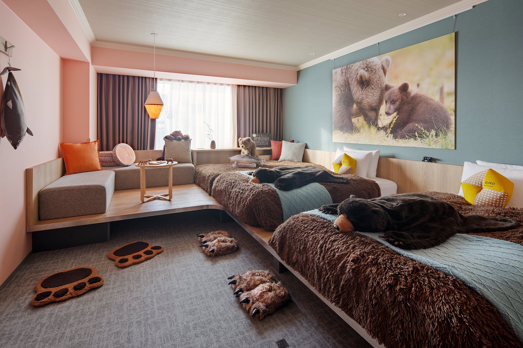 北海道を代表する動物、エゾヒグマをテーマにした「エゾヒグマルーム」では、誕生にあたって動物のリアルな生態表現と、お客様の快適さの両立という課題に直面しました。