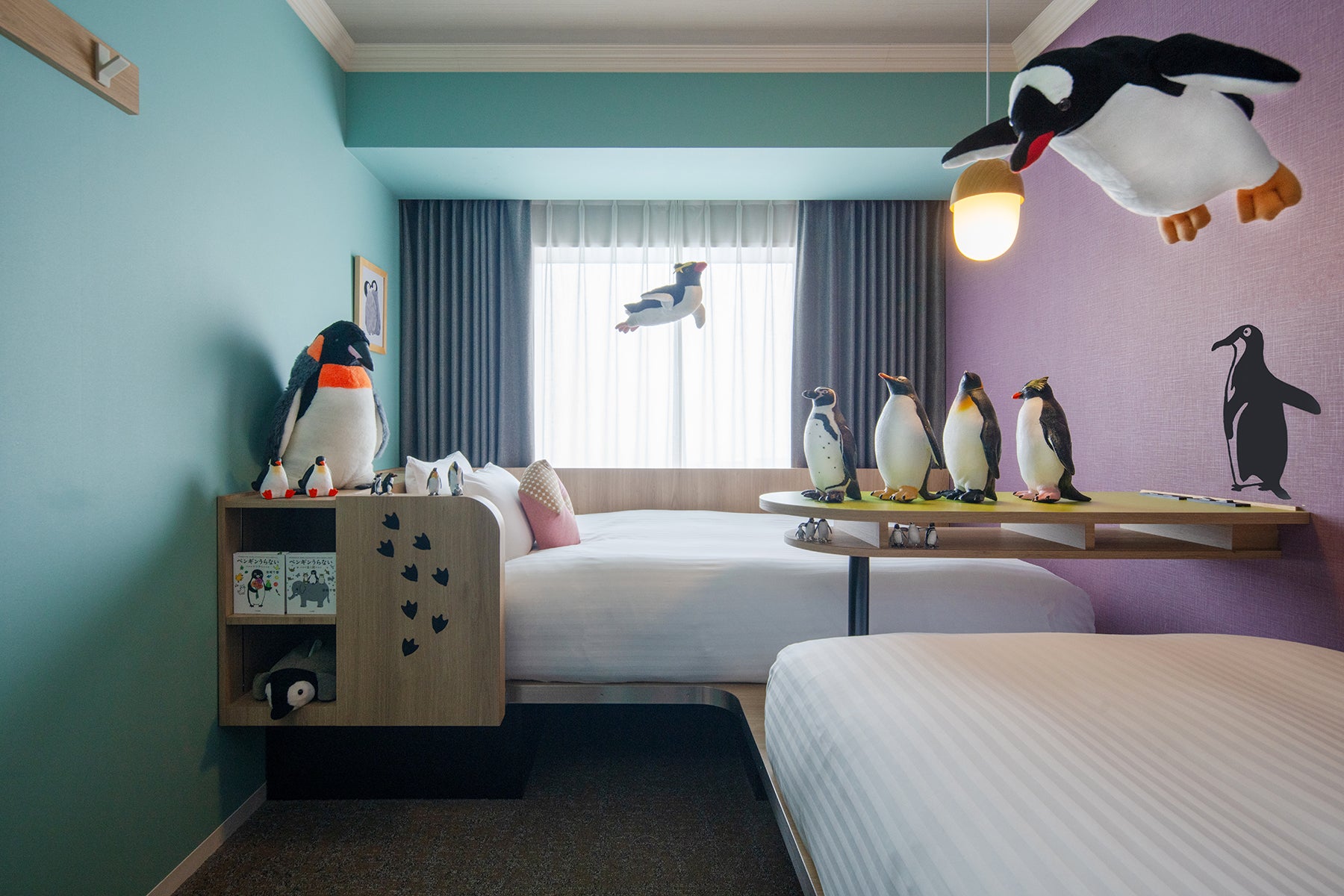 例えば「ペンギンルーム」の象徴的なデザインである、天井から吊るされたペンギン。