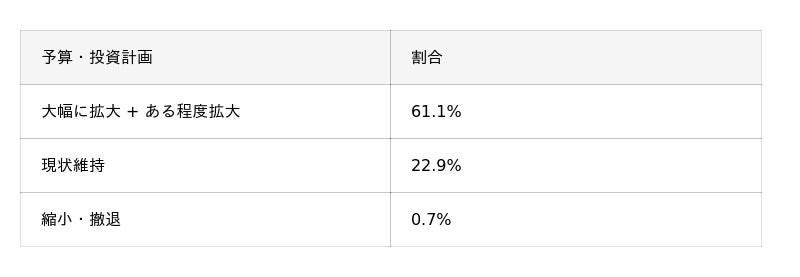 2. 予算拡大を見込む企業が「61%」、縮小はわずか「0.7%」