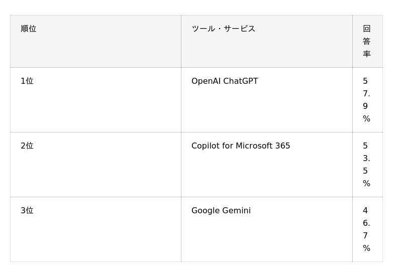 4. 業務利用ツールはChatGPT・Copilot・Geminiが主流