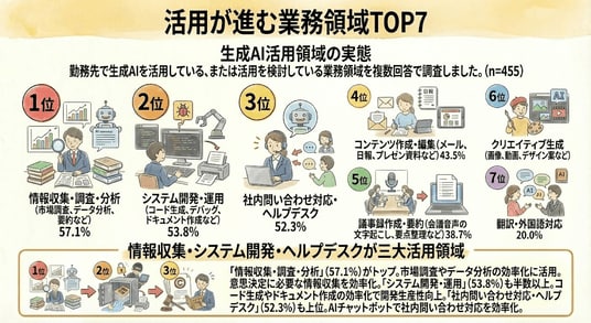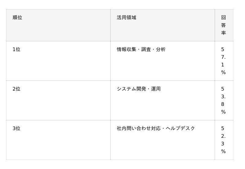 - 活用領域の完全ランキング(7項目) ── クリエイティブ生成や翻訳対応の実態
