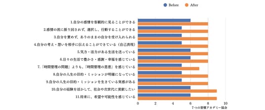 自己評価スコアが平均2~3点(10点満点)向上していることが確認されました。