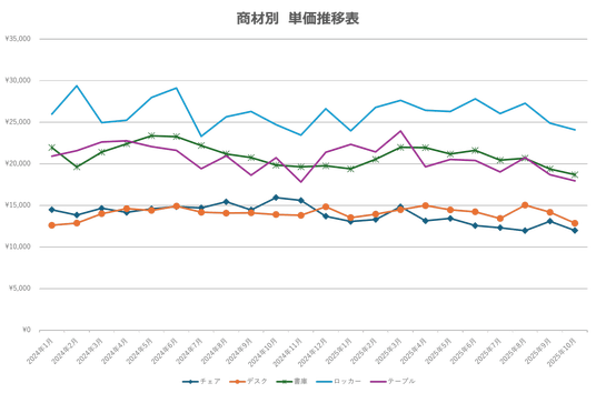 株式会社オフィスバスターズ(東京都千代田区、代表取締役社長:熊谷 正慶<東京証券取引所 TOKYO PRO Market 証券コード:5890>、以下「当社」)は、2025年11月度の「中古オフィス家具指数」を取りまとめました。毎月、当社の中古オフィス家具動向を広く皆様へお伝えすることで、法人・個人のお客様の動向や推移を分かりやすくご案内しています。