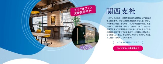 関西支社ではライブオフィス見学を実施中 https://www.officebusters.com/facility/branch/liveoffice-kansai/ まで