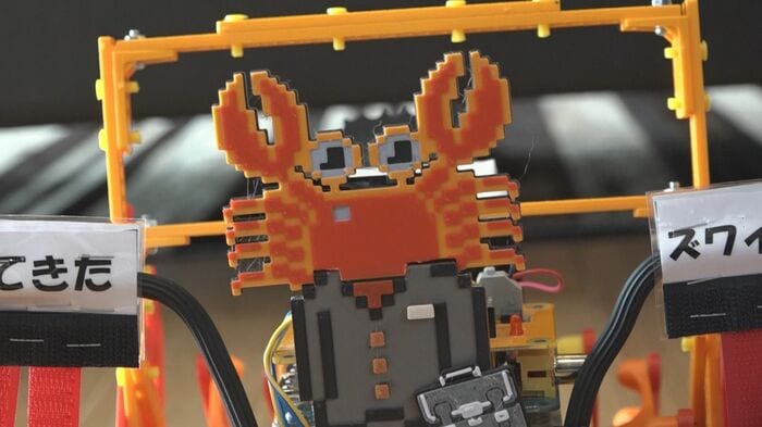 「今回は3Dプリンターでドット絵にしたカニを作った。カニは中学生らしく学生服を着ていて、名前は“ズワイガ兄さん”。原点に戻ってカニを多く使っている」と楽しそうにポイントを語る松田さん。