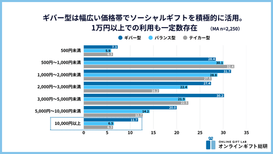 2. ギバー型は幅広い価格帯でソーシャルギフトを積極的に活用。1万円以上での利用も一定数存在