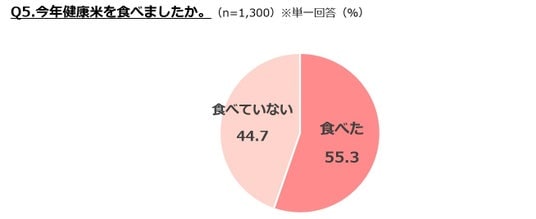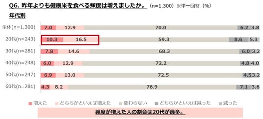 ・健康米の喫食経験は55%。頻度が増えた人の割合は20代が最多。「栄養価」「ダイエット・体型維持」が主な動機に。
