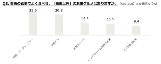 ・白米以外では「米麺(フォー等)」や「米粉パン」が2割以上の支持を集め、小麦代替としての浸透も進む。