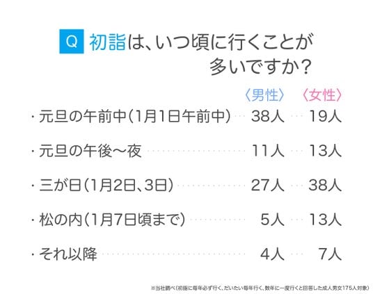 初詣に行く時期について尋ねたところ、「三が日(1月2日・3日)」が最多という結果になりました。