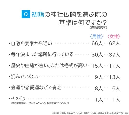 有名な神社仏閣や話題性よりも、身近で参拝しやすい場所を重視する傾向が強いことがうかがえます。