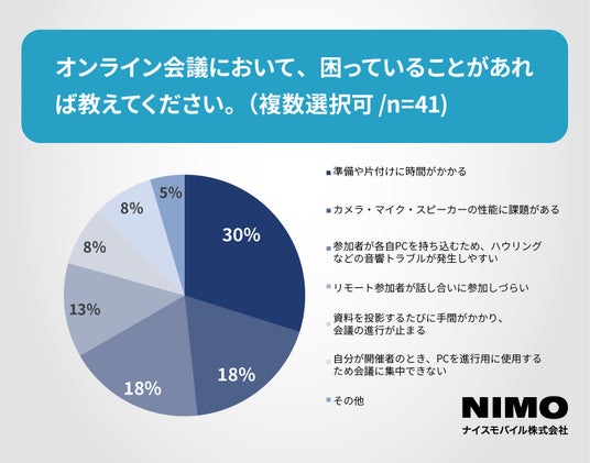 回答のあった71教育機関のうち約66%がオンライン会議を実施。回答のあった71教育機関のうち約55%がオンライン授業の実施。オンライン活用は進む一方、授業での本格的な活用は定着途上にあります。具体的な課題に対する設問では、オンライン会議・授業を問わず「準備や片付けに時間がかかる」という運用上の手間や、「カメラ・マイク・スピーカーの性能に課題がある」という現場ニーズと合致しない機器が導入されていることが首位となりました。NEXT GIGA期におけるさらなる環境整備や、運用支援の重要性が改めて浮き彫りとなったと考えています。