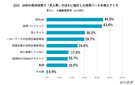 10.25卒の高卒採用で「求人票」のほかに強化した採用ツールを教えてください。※複数回答可(n=431)