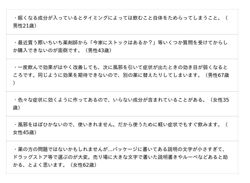 風邪をひいた時の対処方法、薬の利用状況などについて聞いています。調査結果をお知らせいたします。