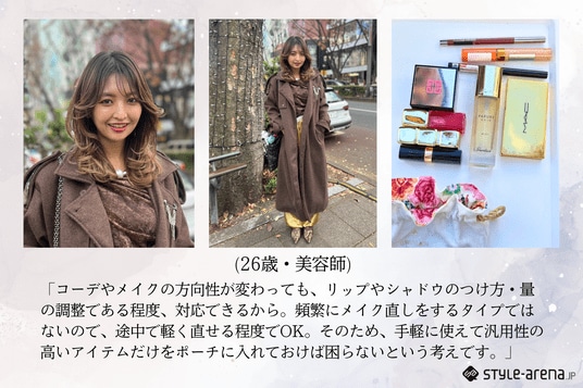 今回はその中でも「変えない派」21名にフォーカスし、表参道で深掘りインタビューを実施。コーデはTPOや気分に合わせて変えても、ポーチの中身は変えない。