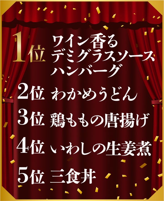 一方で、2位の「わかめうどん」、4位の「いわしの生姜煮」といった昔ながらの定番メニューも安定した支持を集めています。