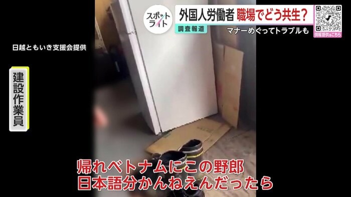 提供された映像には、ベトナム人と日本人作業員のやり取りが映っていた。