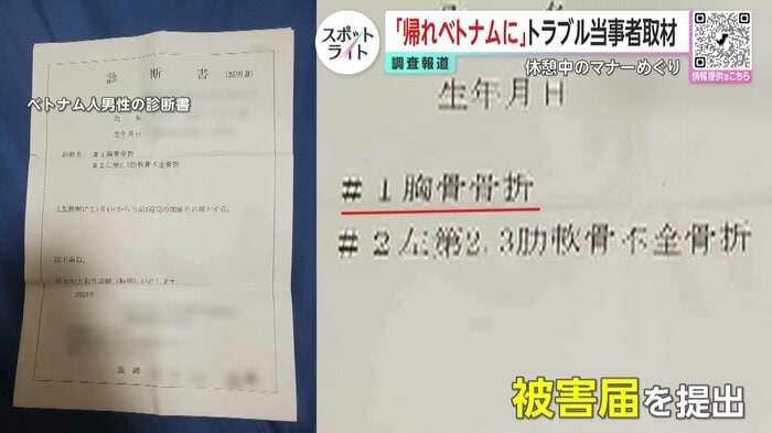 私たちは、踏みつけられたと主張するベトナム人男性に話を聞くことができた。