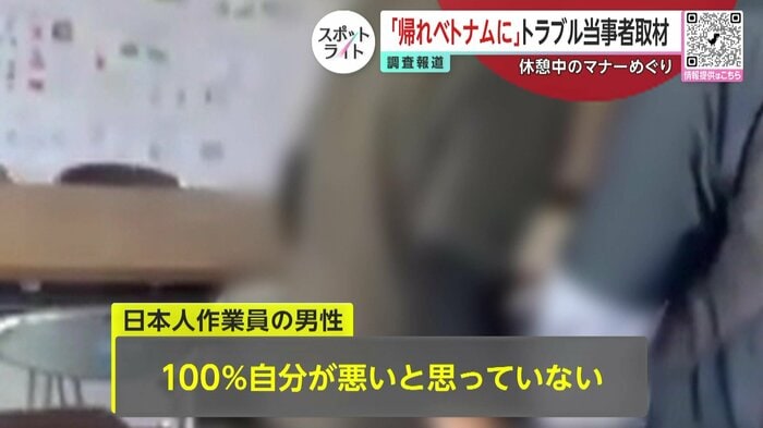 被害を訴えるベトナム人男性は、休憩所での「スマホマナー」については、貼り紙などもなく、認識してなかったと話す。