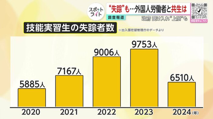 深刻な人手不足を補うため、2024年に過去最多の230万人を超えた外国人労働者。しかし、技能実習生では、年間で6000人から1万人近くが失踪したというデータもある。