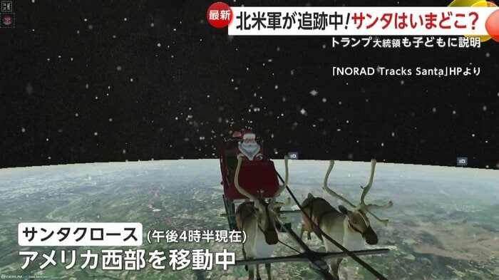 アメリカ軍などが追跡しているサンタは、午後4時半現在、アメリカ西部を移動している。