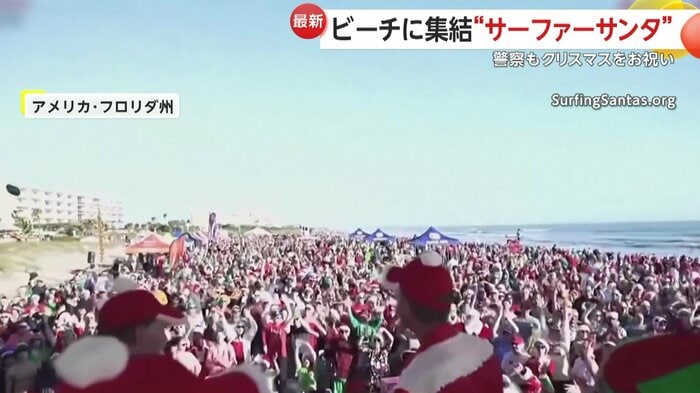 アメリカ・フロリダ州で恒例の「サンタサーファー」イベントが開催され、海に飛び込む姿やソリ付きボードで賑わった。国際宇宙ステーションからは、宇宙飛行士の油井亀美也さんが、地球に向けてメッセージを発信した。