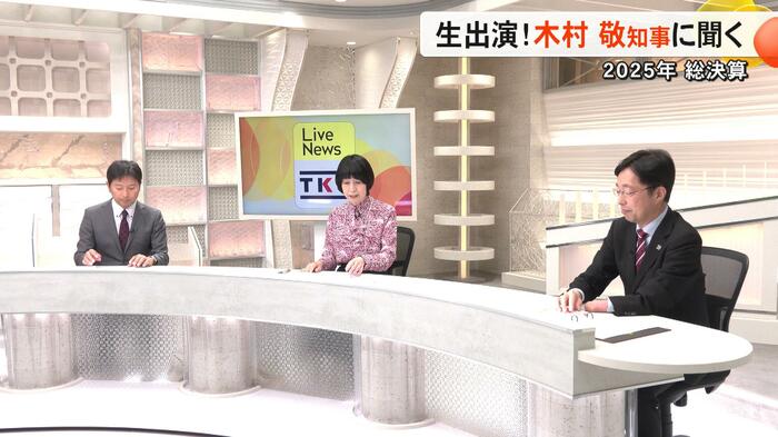 TKUライブニュースのスタジオに熊本県の木村敬知事を招き、2025年一年を振り返りながら県政の課題や今後の展望について話を伺う。今回は8月に起きた記録的大雨からの復旧復興や県有スポーツ施設の今後について話を聞いた。