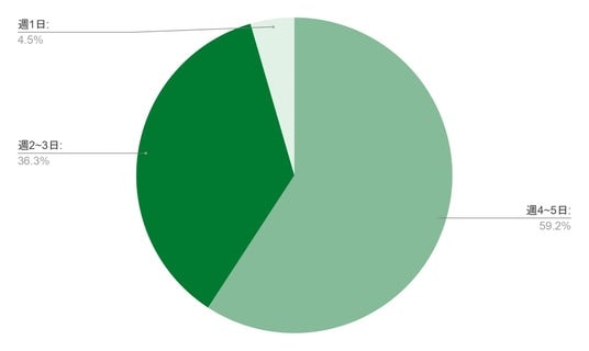 フルタイム志向の方: 週4~5日のフルタイム案件が59.2%と過半数を占めており、安定した収入を求める方に適しています。