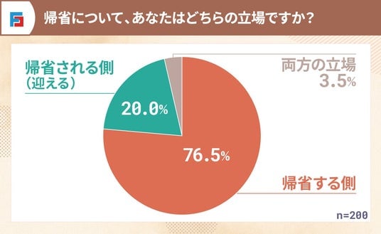 今回の調査は、「帰省する側」にあたる人が76.5%を占めており、その意見が多く反映された結果となっています。
