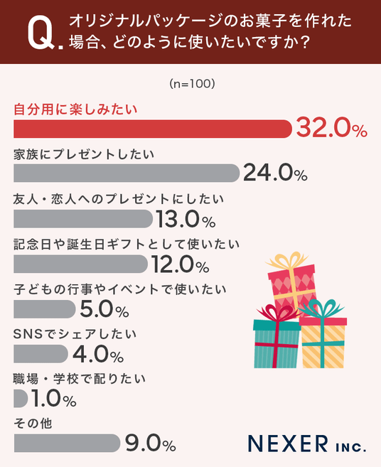 続いて、オリジナルパッケージのお菓子を作れたら「どんな場面で使いたいか」を調査しました。