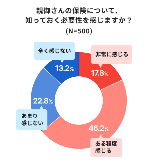 親の保険について「知っておく必要がある」と感じている人は6割以上(64.0%)に上りました。多くの人が、親の万が一の事態を「自分たちの問題」として捉えていることがわかります。