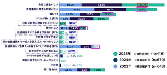 Q4. 投資しない理由の主因は"資金余力"、知識・心理的ハードルは低下傾向